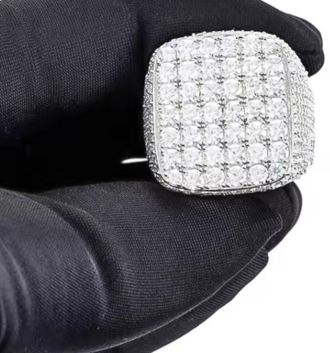 Hiphop Iced Out Moissanite Sterling Silver Mens Ring