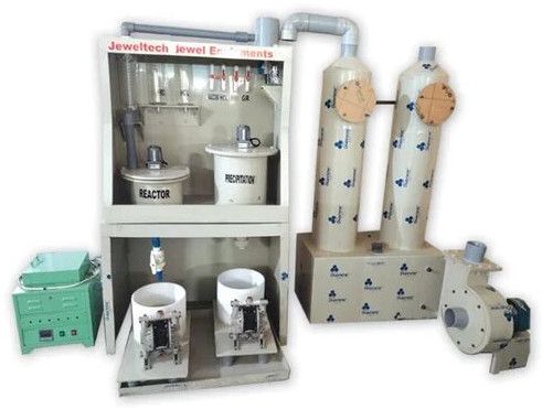 Use friendly easy to operate. One time 100% Dissolution. Single person opreting syatem. All motor and pumps imported quality. Auto Acid filling features. Scrubber unit ph-7 Approved. Triple cycling condenser. No sound. Complete Fume control pollution free. Purity of 99.99carat , 100% Recovery, No Loss of metal in process. Compatible to use in jewellery shop Low maintenance cost.