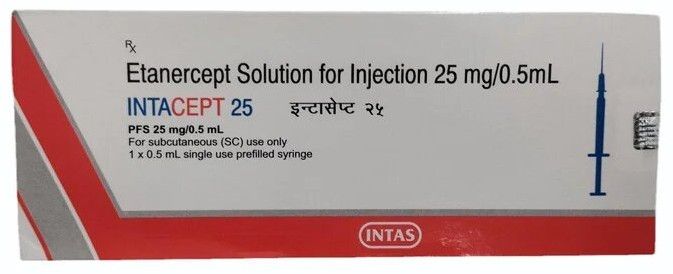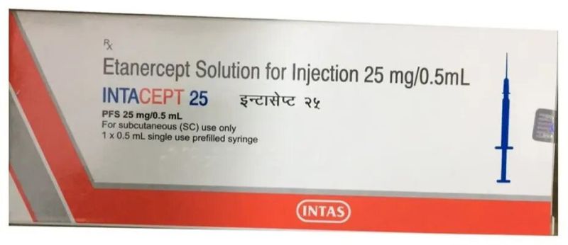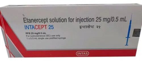 Etacept 25mg Injection is a medicine used to treat a variety of conditions such as ankylosing spondylitis, rheumatoid arthritis, psoriasis, ulcerative colitis, and Crohn's disease. It provides relief from swelling, pain, and redness associated with various disorders and improves physical function.