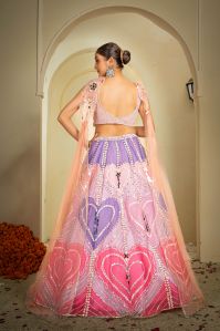 Manufacturer / Exporter / Retailer Of Bridal Lehenga, Designer Lehenga Choli, Sharara Suit, Champagne Gold Net Saree, Designer Gown, Wedding Suit, Silk Lehenga, multi-colour net dupatta lehenga set