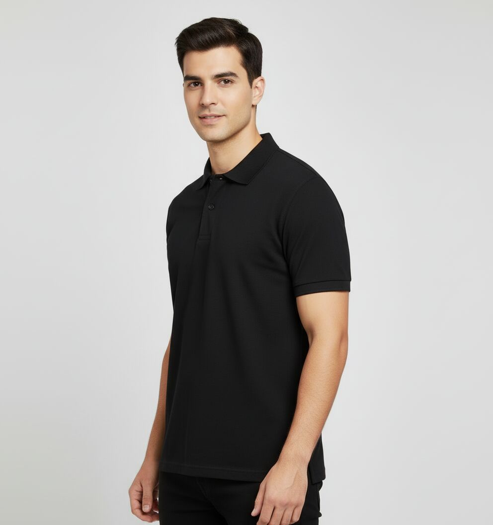 We are a leading Manufacturer, Exporter, Supplier, and Trader offering a Men's Black Cotton Polo T-Shirt crafted from premium cotton fabric. This classic black polo features a collar neck, half sleeves, and a regular fit, making it perfect for casual wear. The plain pattern adds versatility to your wardrobe, while the size S ensures a comfortable fit. Made in India, this timeless piece combines style and comfort effortlessly. Elevate your everyday look with this stylish and high-quality polo shirt.