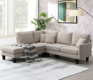 Luxe Fabric L Shape Corner Sofa Set Left Sectional White