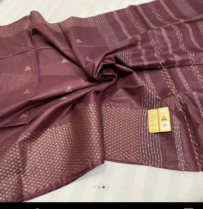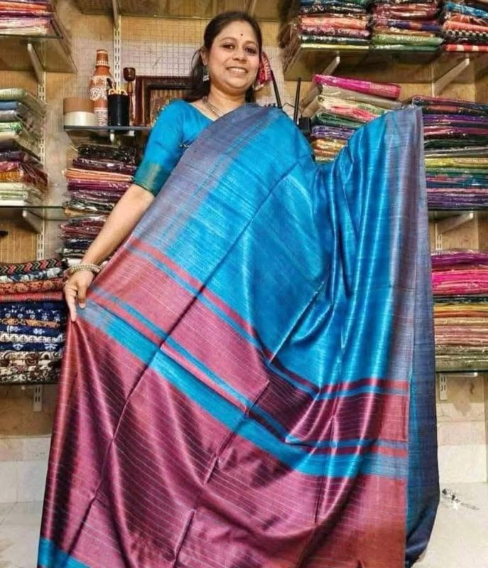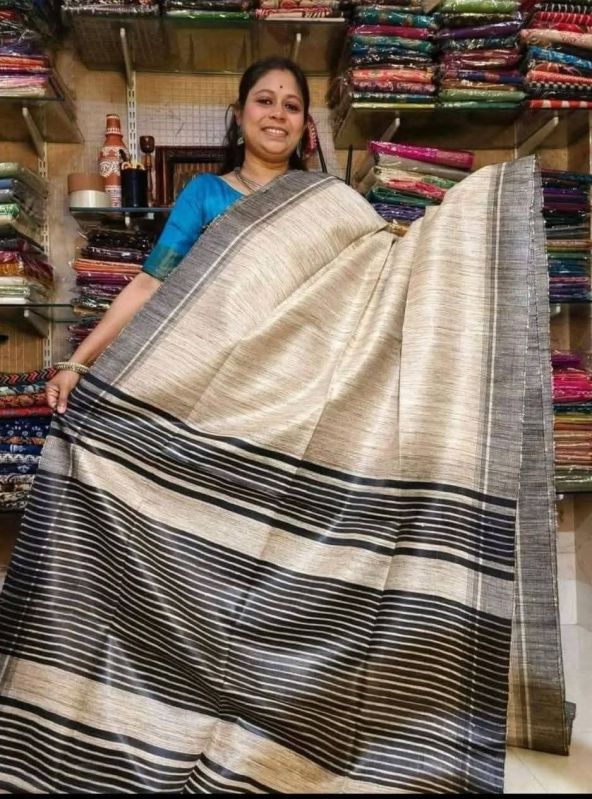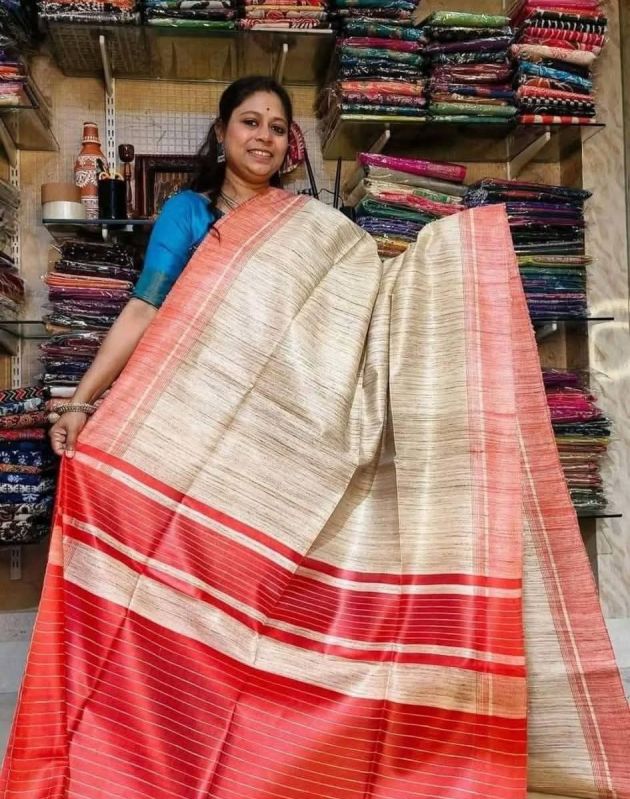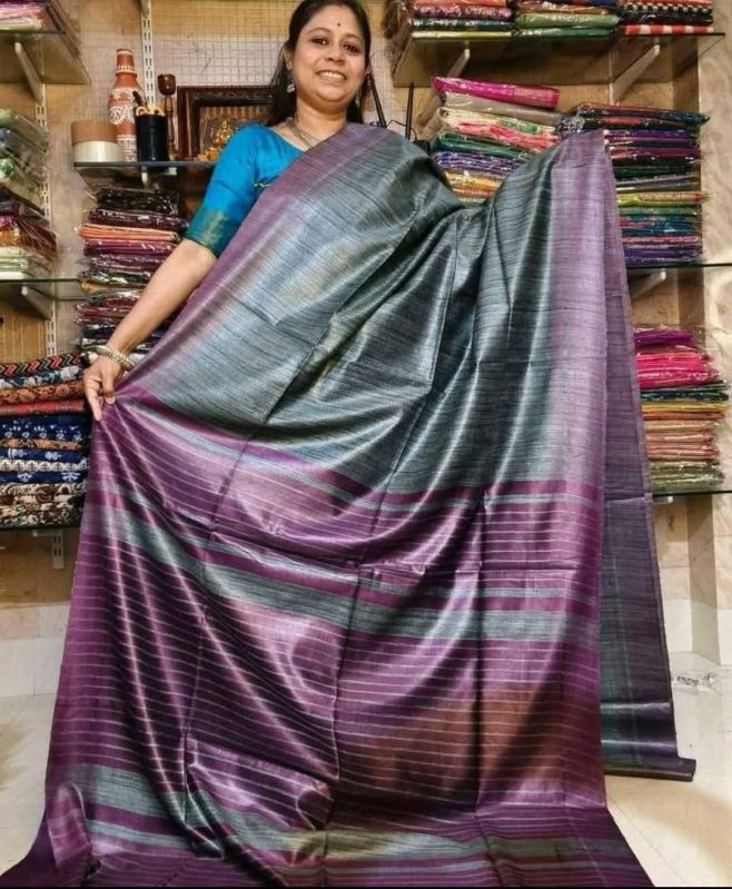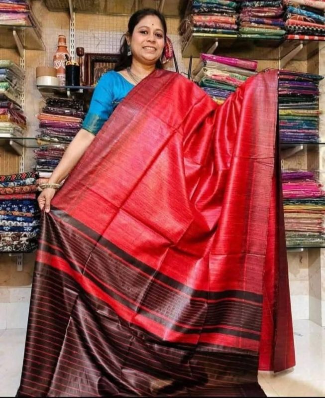 Elevate your traditional events with our Handcrafted Tussar Ghicha Saree with Zari Border. Available in various colors, this 1-meter wide saree is made of premium Tussar Ghicha material. The intricate handcrafted design and Zari border add a touch of elegance. Packaged in a plastic cover, this saree is perfect for casual wear.