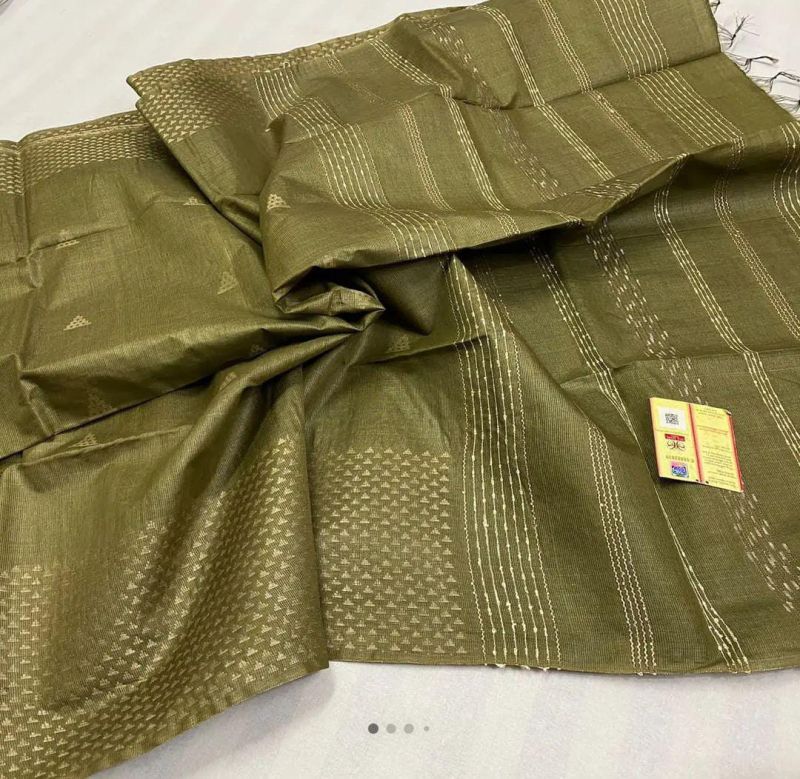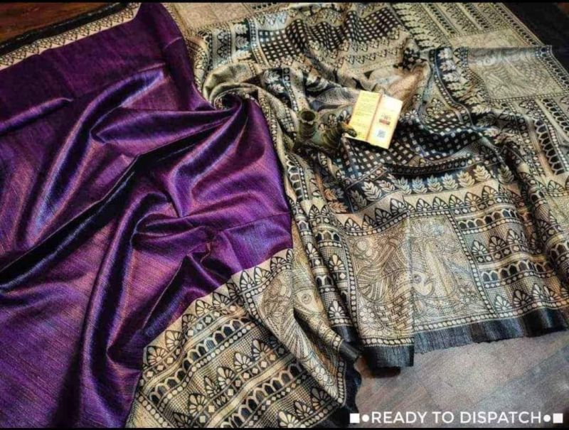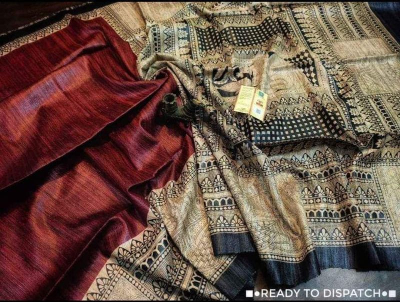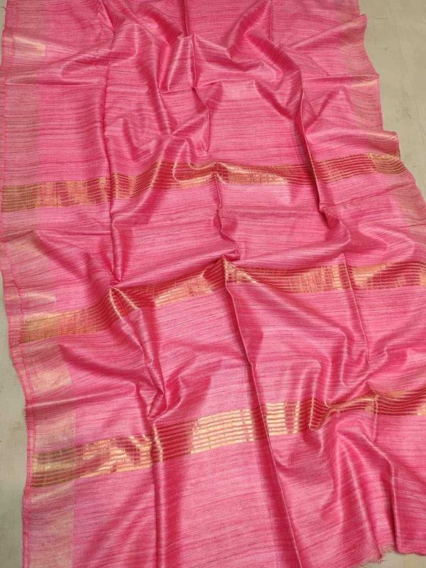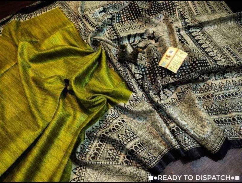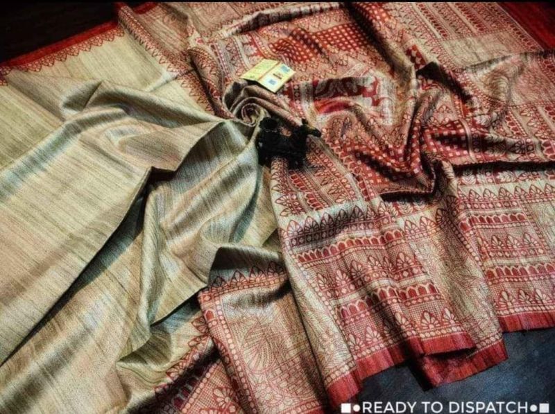 Elevate your traditional events with our Handcrafted Tussar Ghicha Saree with Zari Border. Available in various colors, this 1-meter wide saree is made of premium Tussar Ghicha material. The intricate handcrafted design and Zari border add a touch of elegance. Packaged in a plastic cover, this saree is perfect for casual wear.