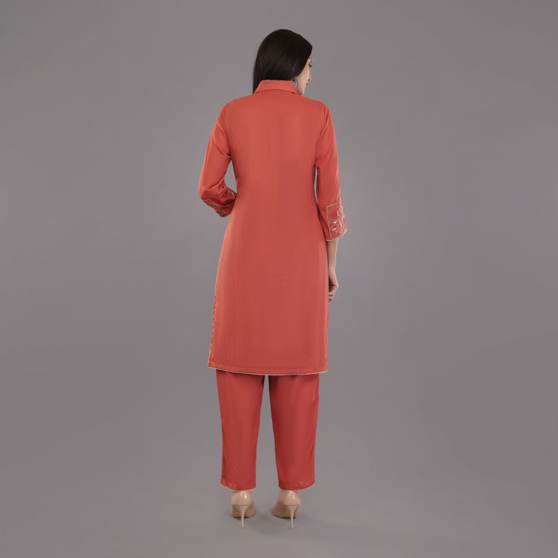 Designed from lightweight, breathable Rayon in a dreamy beach green hue, this kurti set adds a pop of colour to any wardrobe.