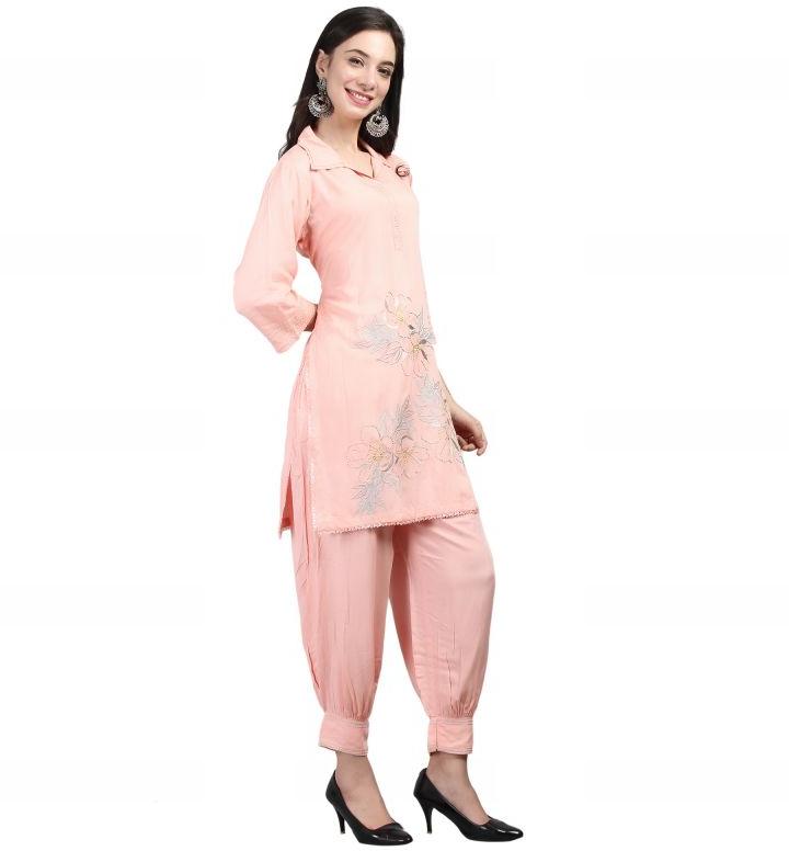 The machine embroidery work on the kurti adds a touch of elegance and intricate detailing, enhancing its overall appeal. The collar neck design adds a chic and sophisticated look to the kurti, while the sleeves provide the right amount of coverage and flexibility.