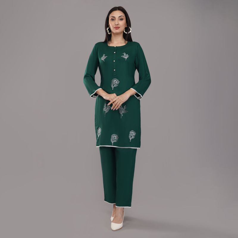 Our n blend fabric, it feels incredibly soft and luxurious with your skin, ensuring a delightful wearing experience.stunning and comfortable Rayon Fabric Mehndi Green Kurti made from a premiu