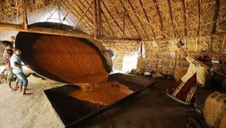 Marayoor Sharkara or Marayoor Jaggery/ Gur/ Bellam/ Vella/ Sakkarai is known to be one of the sweetest jaggeries available in India. Jaggery production is considered to be a cottage industry in this part of the world and is traditionally made in the respective farms. Marayoor or Marayur is a town located in the Idukki district of Kerala. This place in South India is famous for its natural Sandalwood forests and sugar rich jaggery production. Initially, the sugar cane juice is heated in a huge vessel. It is then boiled and condensed to form high-quality jaggery balls. The process is an example of pure workmanship, each jaggery ball is handcrafted making it one of the existing industries which are not automated.