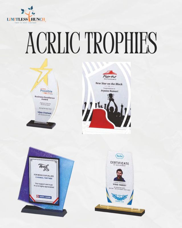 We are a trustedAcrylic Trophy Manufacturer and Exporter in India, offering a wide range ofcustom-designed acrylic trophies and awardsideal forcorporate recognition, academic achievements, sports events, and promotional branding. Our trophies are crafted frompremium-grade clear, colored, or frosted acrylic, delivering a crystal-like finish with high durability and lightweight design.