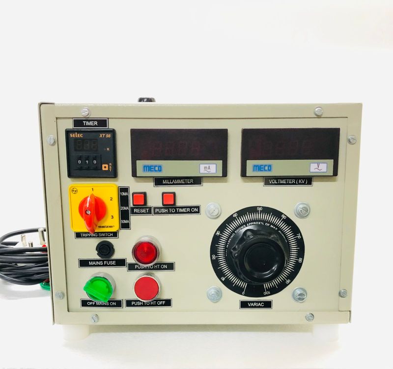 High voltage test sets are available from 5kv to 75kv voltage range. The sets operate from a supply of 230v, single phase, 50HzAC. The sets are designed with all important features of high voltage testers. For more than 5kv, the set is supplied in two separate parts.