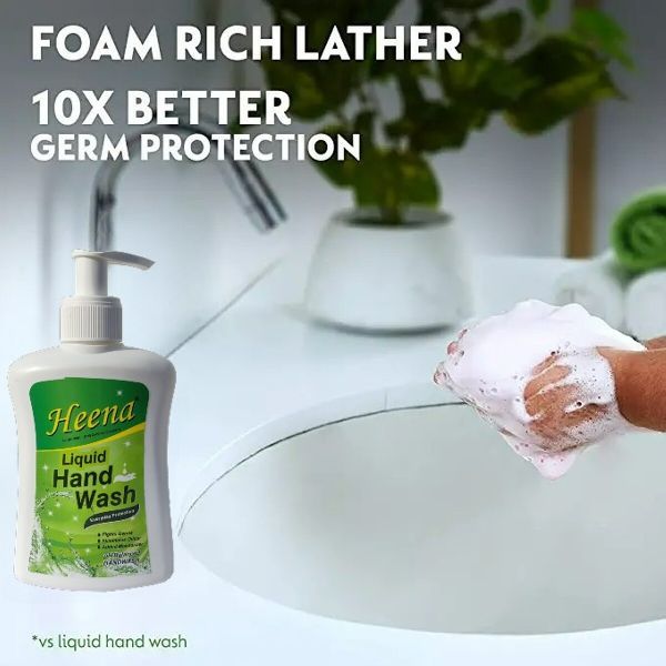 Heena handwash Liquid is enriched with natural Ingredients that offers germs protection and soft hands. Keep your hands clean, safe and protected by using the antibacterial Germ-Protect Hand wash Liquid. It is the best handwash made after a lot of research. It has following characteristics-