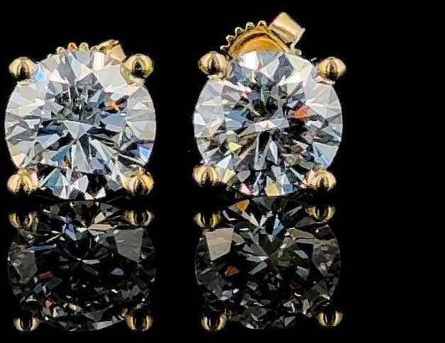 These stunning diamond studs feature high-precision round brilliant stones, offering incredible fire and brilliance. The 4-prong yellow gold setting provides a secure hold while allowing maximum light to pass through the diamonds, enhancing their natural sparkle.