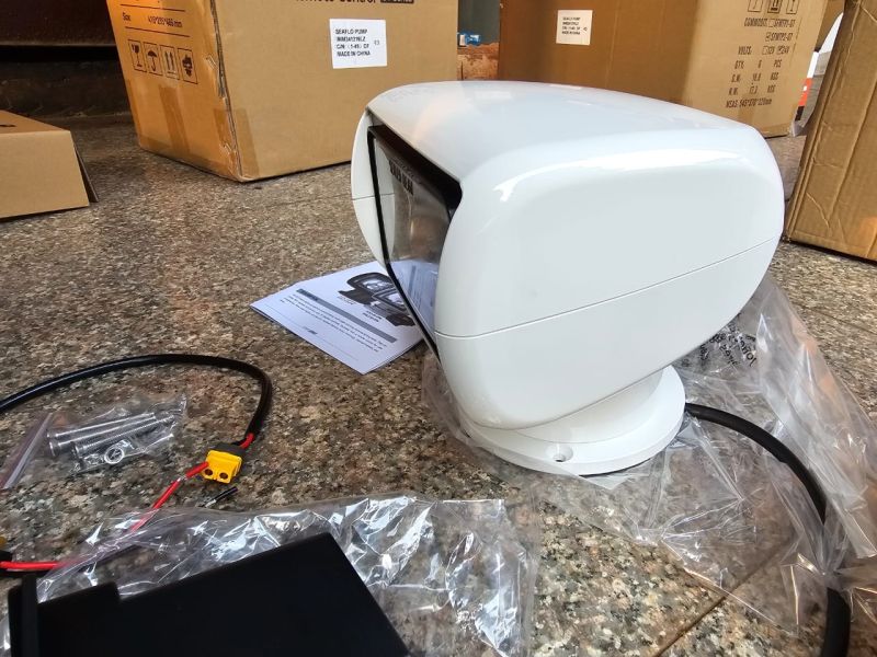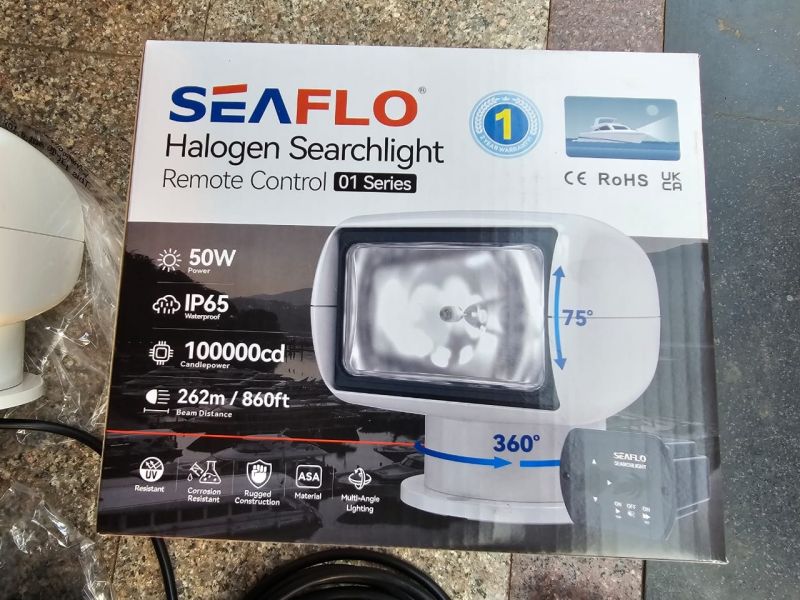 SEAFLO searchlights can perform omnidirectional, multi-angle, and long-distance lighting tasks. It can rotate 360 degrees horizontally and 75 degrees vertically. Equipped with remote control for user convenience. Ideal for mariners locating buoys, moorings, channel markers etc. Ideal for large motorhomes and buses to pinpoint road signs, campsites or as a backup light.