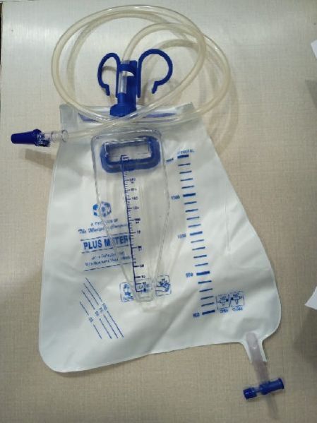 Urine Collection bag with 2000 ml Capacity, With non return valve, Hanger and Marking, Top Outlet, Transparent Kink Resistant 100cm Tube Length, Universal ABS Connector, High Quality Medical Grade One Side Transparent Graduated Sheet and other side Opaque Sheet Bag, Packing Ribbon Pouch, EO Strile.
