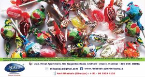 All type of Candy, Lollipop, Jumbo Lollipop, Toffee, Bubble Gum, Tattoo Candies.