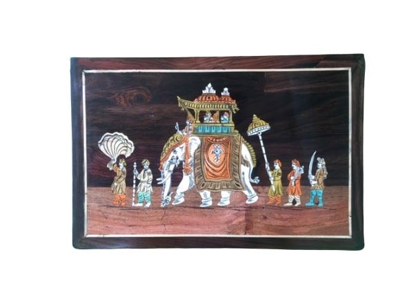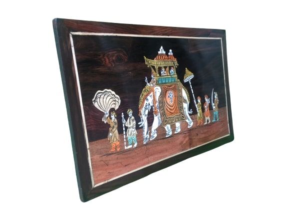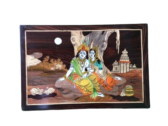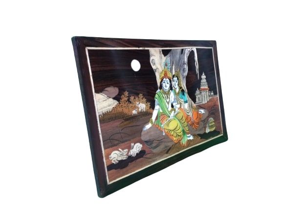 These wooden frames are made up of pure rosewood, without any artificial colours. Original inlay art from Mysore painting without synthetic colours.