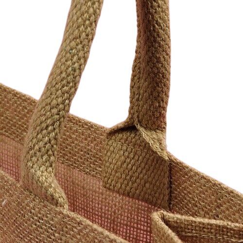 The Jute Shopping Bag is made from premium quality of jute fabric, a sustainable and biodegradable material, The interior of the Jute Shopping Bag is large, allowing you to carry your items with ease. Whether you're going out market, the grocery store, or simply going for a walk, this bag seamlessly mixes usefulness and design. The strong handles ensure a secure grasp and a pleasant shopping experience which can elevate your shopping experience