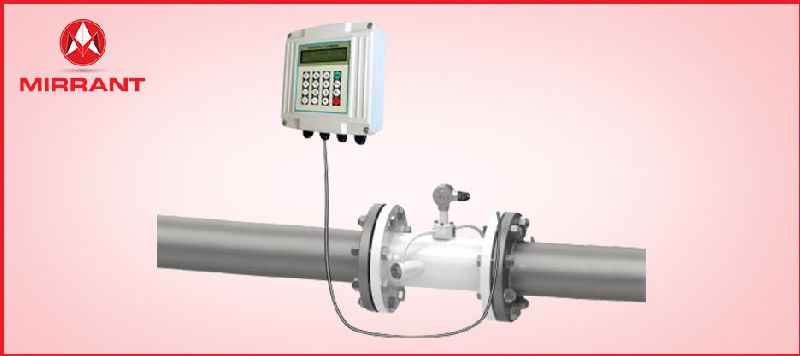 The working principle of a Ultrasonic flow meter is based on the transit-time Technology.The ultrasonic flow meter utilizes two ultrasonic transducers that function as both ultrasonictransmitter and receiver. The ultrasonic flow meter operates by alternately transmitting and receiving a burst of ultrasound between the two transducers by measuring the transit time that it takes for sound to travel between the two transducers in both directions. The difference in the transit time t measured is directly proportional to the velocity ( V) of the liquid in the pipe. With no flow, the transit time will be equal in both directions. With flow ultrasound will travel faster in direction of flow &slower against the flow. The liquid velocity (V) inside the pipe can be related to the difference in time of flight through the following equation