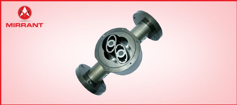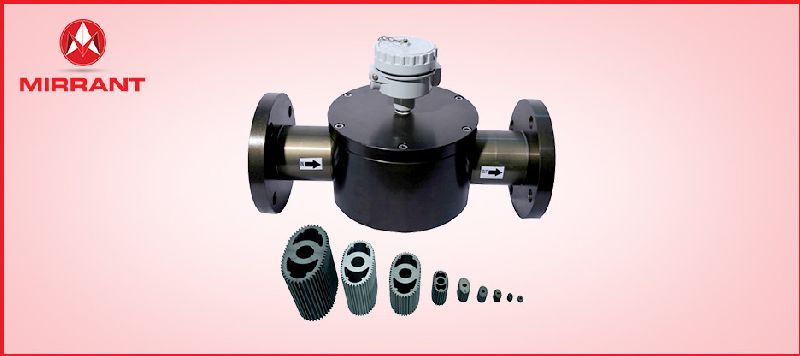 Oval gear meters are displacement-type volume meters that transport defined incremental volumes in individual measuring chambers. The measuring element consists of two high precision toothed oval gears, which are driven by the flow of the medium and mesh with each other. In this way, a defined volume is transported for each rotation of the pair of oval gears. The number of rotations is a measure of the amount of fluid that has passed through the meter. The rotations are detected by a sensor element. A very precisely adjusted gear pair within the casing forms the measuring element. The in flowing medium causes the gear pair to rotate. The rotary motion is scanned by contactless sensors. Since each individual tooth generates a pulse, this results in a very high resolution. Consequently, even the smallest volumes can be measured or dosed precisely. The measurement unit contains two pick-offs that are circumferentially offset by of a tooth pitch to generate a 2 channel flow-proportional frequency signal. Suitable processing of the signal provides an greater resolution and the option to identify the flow direction. Basically, the measurement accuracy increases with increase in viscosity of the media. The oval gear flow meter comprises oval-shaped, geared rotors which rotate within a housing of specified geometry. Fluid differential pressure causes the intermeshing gears to rotate, trapping a ‘pocket’ of fluid between the gear and the outer housing and subsequently emptying the fluid pocket into the downstream flow