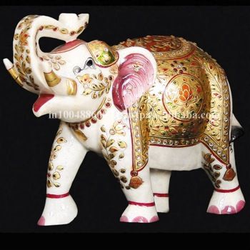 Leading Manufacturer, Supplier & Retailer of Decorative White Marble Handicraft Painted Elephant Statue.