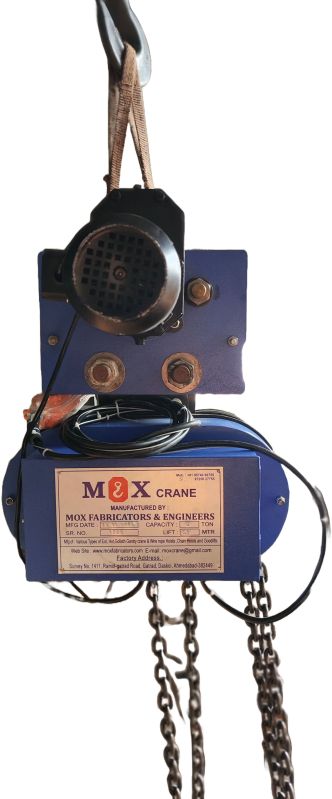 The MOX 1 Ton Chain Hoist is a type of mechanical lifting equipment designed to move heavy loads using a chain and pulley system. It is commonly used in industries such as construction, manufacturing, and warehouses for lifting or lowering heavy items. The "1 Ton" specification refers to the hoist\'s capacity, meaning it can safely lift a maximum weight of 1 ton (2, 000 pounds or 1, 000 kilograms).