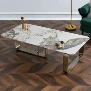 Marble Top Metal Frame Center Table For Living Room Or Office Space
