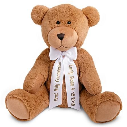A Personal Creations Exclusive! This gentle giant is sure to make your little ones heart skip a beat!Measures 21"H sitting.Polyester plush.Spot clean.Honey brown bear has a sweet, embroidered face with button eyes and wears a satin ribbon.Ribbon personalized with color shown.We personalize ribbon with any message on 2 lines, up to 24 characters per line.Item cannot be gift boxed.Item #30077379