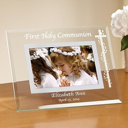 A Personal Creations Exclusive! With its understated design and simple lines, this lovely frame lets your childs Communion or Confirmation photo take center stage.Made of sparkling clear glass.Measures 7 14" H x 9 18" W overall.Features a delicate cross and vine border, beveled edges and an easel back.Holds a 4" x 6" photo.Choose from Communion or Confirmation frame.Engraved with any message on 2 lines, up to 22 characters per line."Confirmed in Christ" or "First Holy Communion" will always appear.Item #30015469