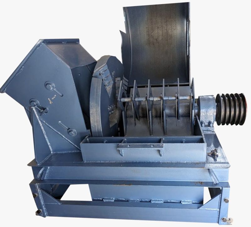 introducing the Namibind SDM-200 Heavy-Duty Sawdust Chipping Machine, designed for high-performance wood chipping applications in industrial settings. Equipped with a powerful 50 HP motor and 3-phase power, this robust machine can process up to 2 tons of wood per hour. Its solid MS (mild steel) structure ensures durability and stability, making it suitable for continuous, long-running operations. The SDM-200 can handle both hardwood and softwood, with a maximum input size of 5 inches for hardwood and 8 inches for softwood. It produces uniform 3mm wood chips, ideal for sawdust production. The machine is fitted with 4 high-quality chipper blades and 24 hammer blades, offering superior cutting efficiency and ensuring precise chip sizes. With an approximate weight of 1.5 tons and dimensions of 6x4x6 feet, the SDM-200 is a heavy-duty, compact unit designed for easy integration into your production line. Safety and reliability are prioritized, with features such as belts, pulleys, and a safety cover to protect operators during operation. Whether for sawdust production, biomass fuel processing, or other wood chipping needs, the Namibind SDM-200 is built to perform under demanding conditions, providing a continuous, efficient running cycle. It is the perfect solution for businesses requiring large-scale wood processing and consistent output quality.