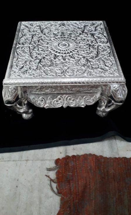 We are a leading Manufacturer, Exporter, and Supplier of a Silver God Singhasan crafted in India. Made from high-quality silver, this Singhasan weighs 700 grams and is perfect for temple applications. The polished finishing adds a touch of elegance to this traditional piece. Each Singhasan is carefully packaged in silver packaging, ensuring safe delivery. Elevate your temple decor with this exquisite Silver God Singhasan, proudly made in India.