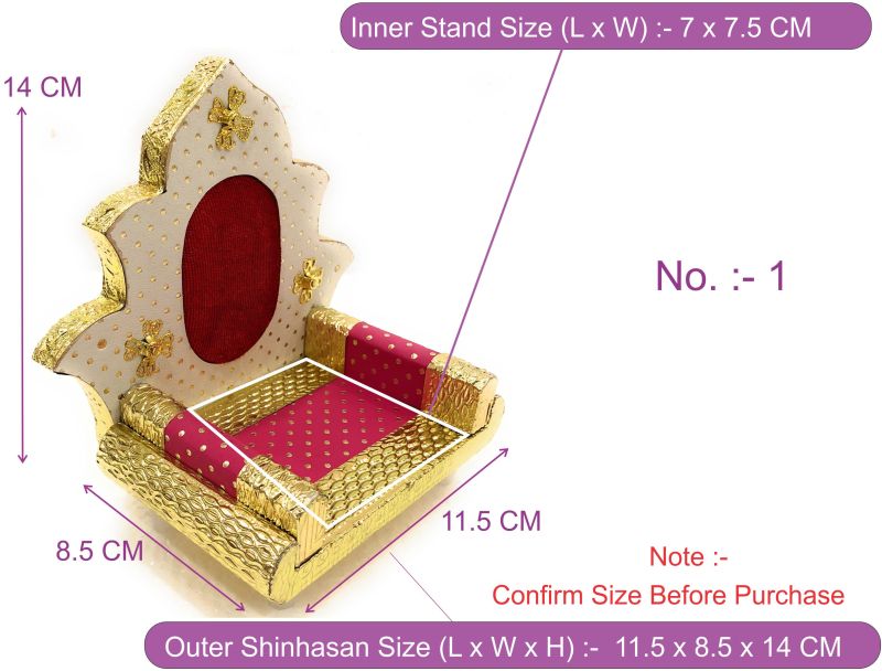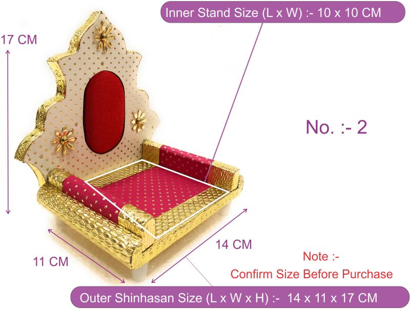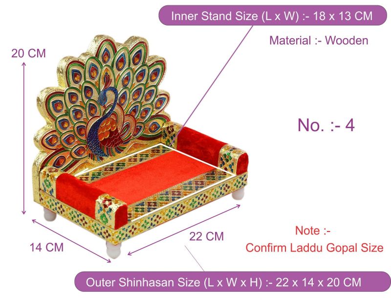 Size Options:Available in various sizes to accommodate different idol dimensions, from small thrones for Laddu Gopal or baby Krishna idols, to larger platforms for other deities.