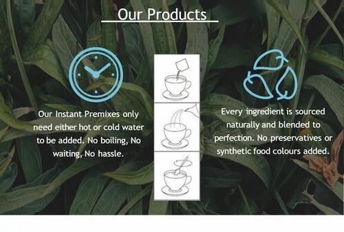 We believe in combining quality, taste and convenience to provide innovative instant beverage solutions. Carefully curated natural ingredients, no synthetic food colors or preservatives ensures that every sip is healthy as well as delicious.Tea is not just a drink; it is embedded in the very fabric of our culture. We have crafted the perfect Instant herbal Tea with a blend of natural ingredients, spices and flavors. Enjoy your favorite authentic Indian tea with the convenience of just adding hot water.