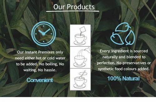 We believe in combining quality, taste and convenience to provide innovative instant beverage solutions. Carefully curated natural ingredients, no synthetic food colors or preservatives ensures that every sip is healthy as well as delicious.