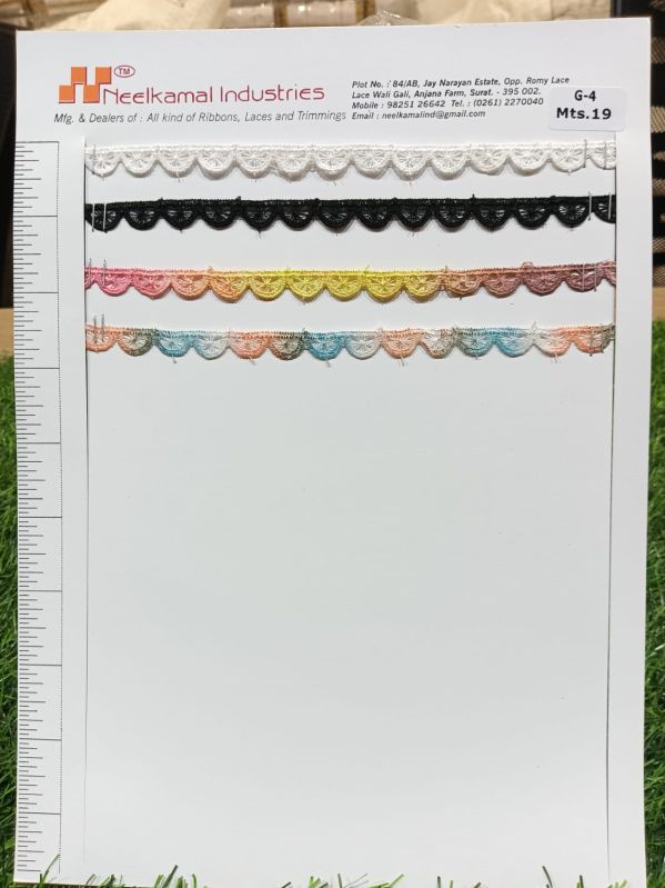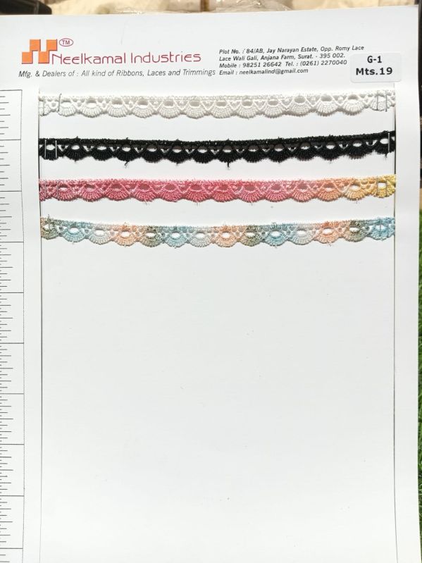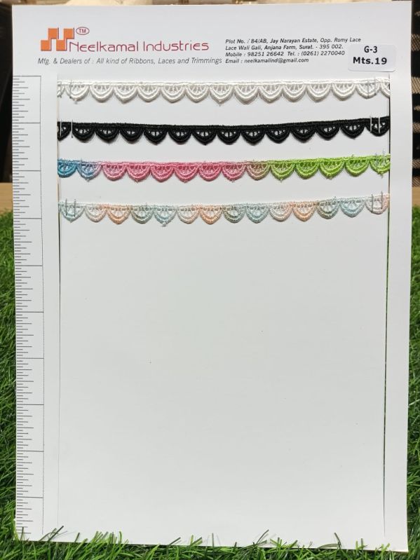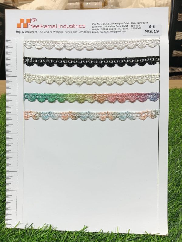 We offer a complete product range of Fancy Laces, Cotton Laces, Embroidered Laces, Jute Laces and Jacquard Laces