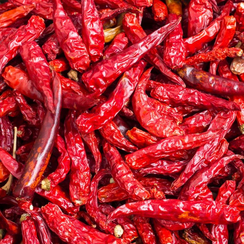 Kashmiri Red Chilies or Kashmiri Laal Mirch are characterized by their ability to give a dark red colour to food, capable of colouring and adding flavour, while at the same time not allowing the food to become too pungent or spicy. India is the largest consumer and producer.