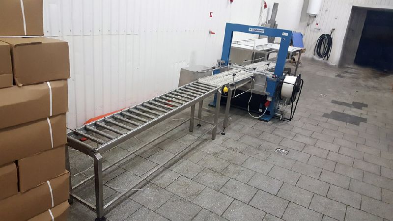 the line is intended for feeding skirting boards and door laths for stamping, and forming packs according to specific parameters. (modifications are possible according to the customers needs and dimensions of boards) the principle of line operation: laths are placed on the line and evened by placing them against the stop on the right side. Then the separator separates laths from one another to ensure that they are fed one by one to the stamping machine where a stamp is affixed. The laths are forwarded to the reverser, which turns each lath over according to the program settings. A pack is piled according to the number of laths and with a reversed last lath or several last laths according to the program settings. After forming a pack the line stops while the pack is transferred to the film wrapping machine. After lowering the pack to the feeding conveyor of the film wrapping machine, the next pack can be formed. A signal from the film wrapping machine serves as permission for feeding the next pack to the film wrapping machine. In the manual mode packs are formed by the operator and transferred to the film wrapping machine by pressing a pedal.