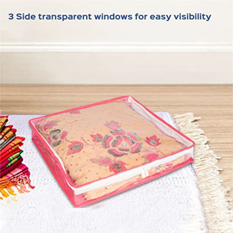 · PROTECTIVE STORAGE With a full-length zip closure this cover protects Sarees from dust moisture and insects while in storage The Transparent material allows viewing without removing from Cover Pattu saree covers with zip
