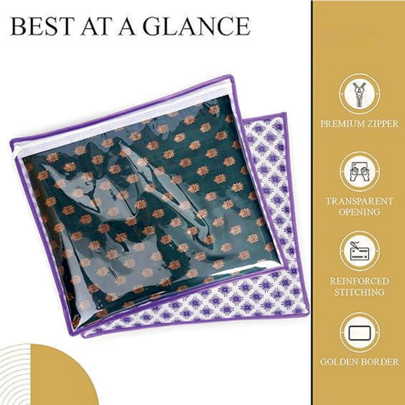 · UNIQUE STRUCTURE & EFFORTLESS VISIBILITY: The Elegance of our Saree Cover lies in its unique structural design, seamlessly merging functionality with aesthetics. Our Saree Cover Printed Purple fines saree organization with its innovative structure However, what truly sets it apart is the transparent showcase feature. Saree Cover harmoniously combines innovation and style, reflecting your love for these garments and your dedication to both their preservation and effortless accessibility.