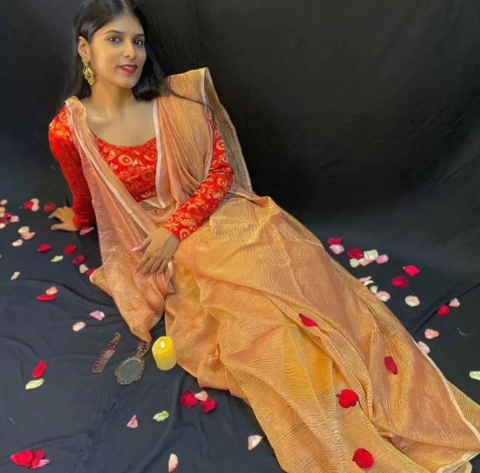 Good quality Full body smoll butis soft fabric blouse piece running rich pallu.
