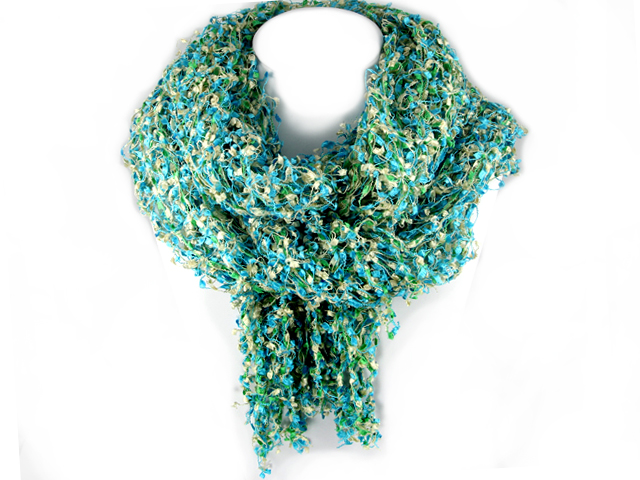 100% soft viscous yarn, multi color combinaiton, hand knitted flower pattern neck scarf for summer fashion wear. 16 x 70 inches in size.Available more than 10 different colors