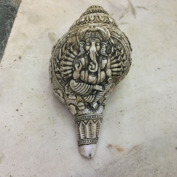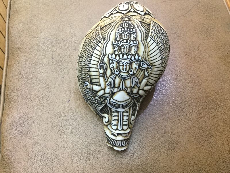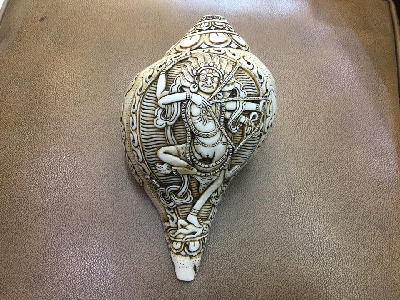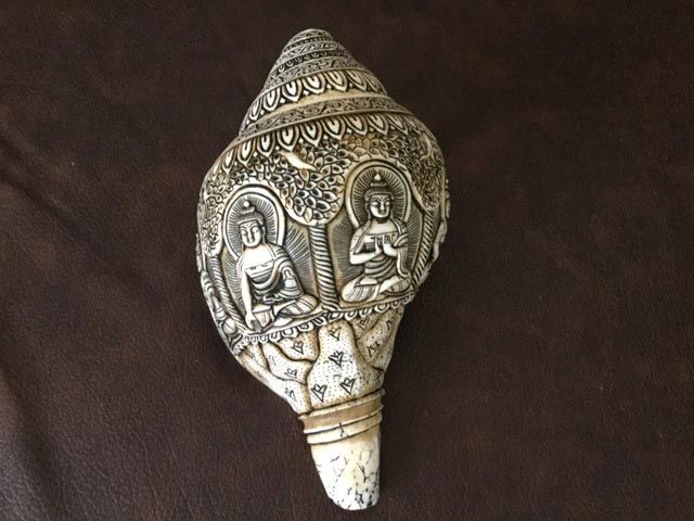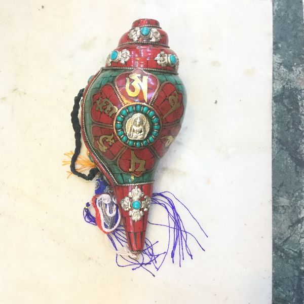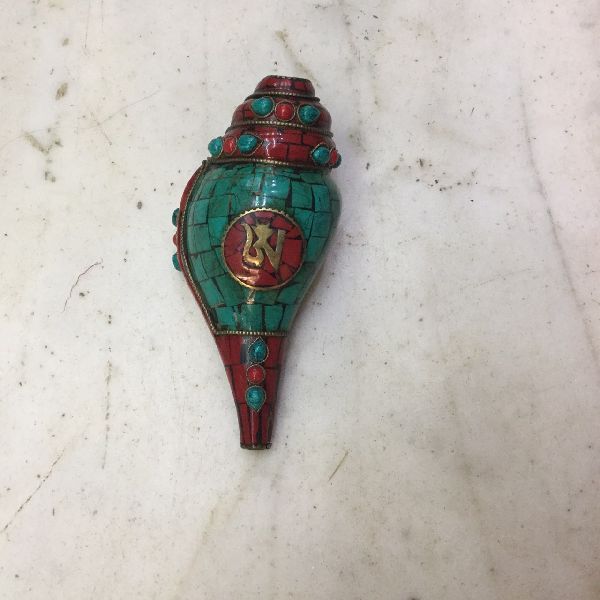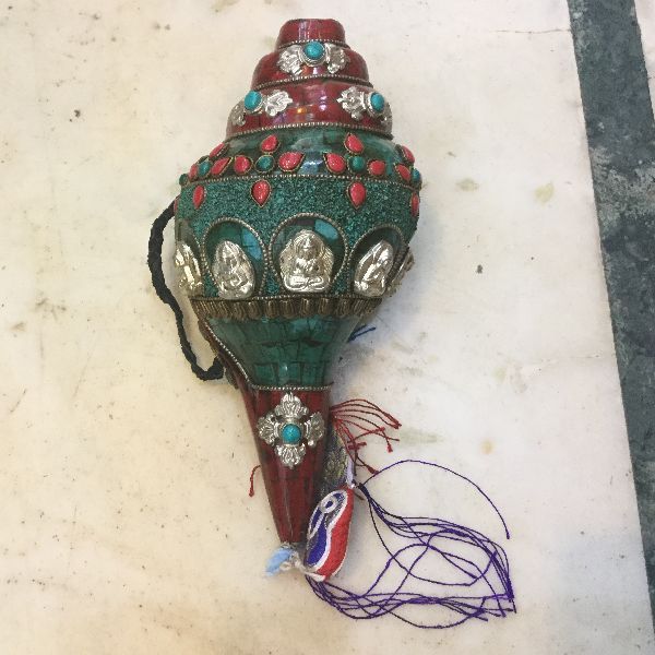 Natural Sea conch shell, fully hand decorated by multi color stone and auspicious Mantra and signs all over.