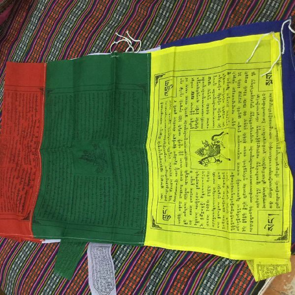 Tibetan prayer flags are available in different name and purpose- with or without Buddhist deities. Tibetan buddhist are beloeve that Prayer flags should not be touch ground it is disrespectifull of buddhist, it should be hang on height.