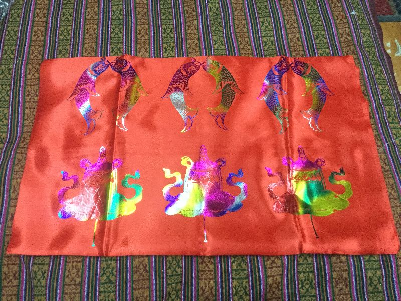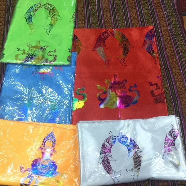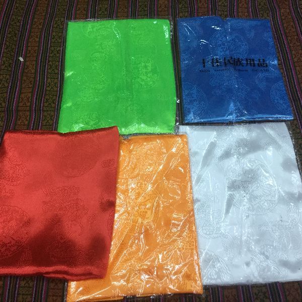 These scarfs are by size in 12 x 50 inches to 18 x 60 inches with or without auspicious signs printed all over.