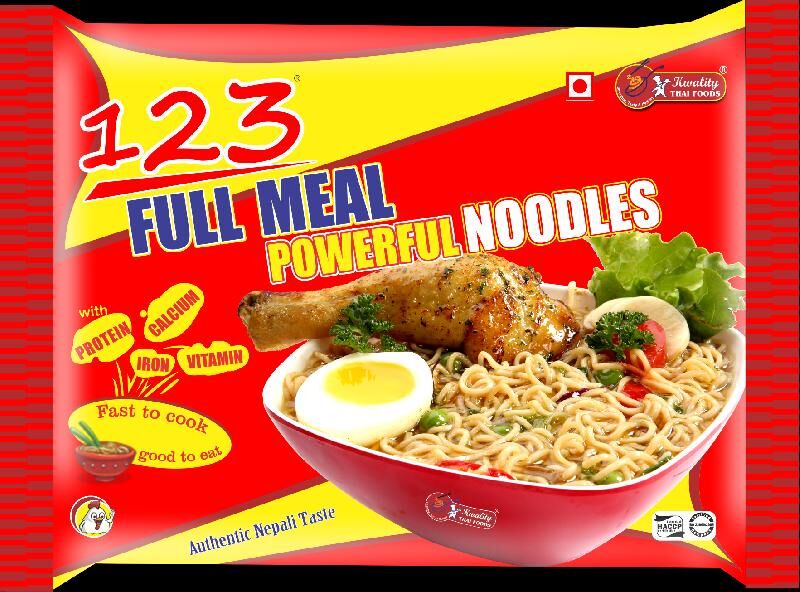 Weight segment: 70g75g90g mrp: rs 15rs 18 rs 20123 full meal noodles is a bigger segment of our brand 123 noodle. A hope for providing sufficient calories and a complete nutrition urge us to produce this bigger segment. It is noodle is a complete family noodle. The overall combination of oil, seasoning and the cake itself is a mixture that sums up a perfect instant noodle. Every family gathering will definitely want 123 full meal in their dish.