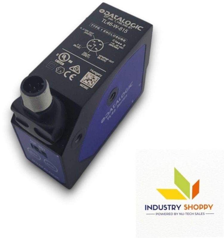 The Datalogic TL50-W-815 Color Mark Sensor (954651000) is part of the TL50 series, is designed for contrast mark detection with a nominal sensing distance of 9mm and a spot dimension of 1.5 x 5mm. Equipped with axial optics and NPN/PNP Dark/Light selectable output types, it offers versatility in detection tasks.