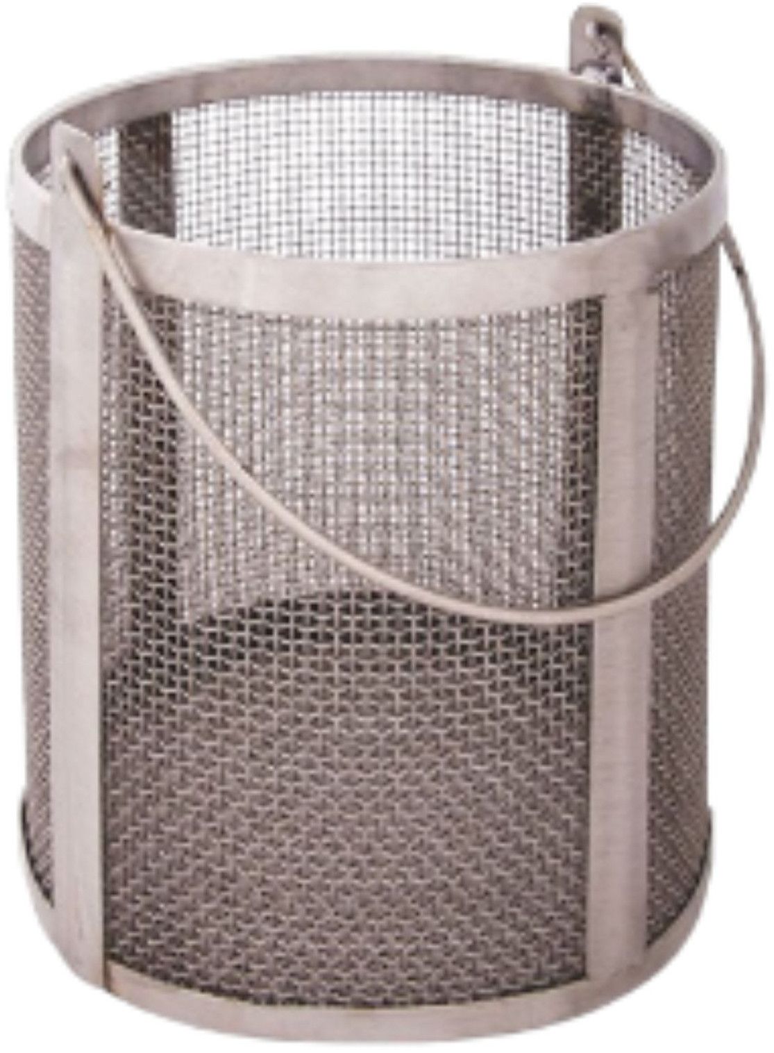 The basket features a wire mesh with selectable sizes (6.3 mm or 2 mm) to suit different materials, and a convenient handle for suspension during density or immersion tests. Its compact and easy-to-clean design allows for accurate and reliable measurements.
