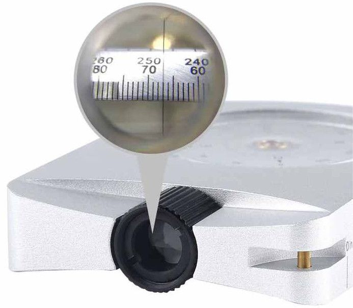 • Sapphire bearing for ensuring quick movement, years of dependability, and optimal precision. Prismatic readings avoid errors caused by mirror readings and potential parallax