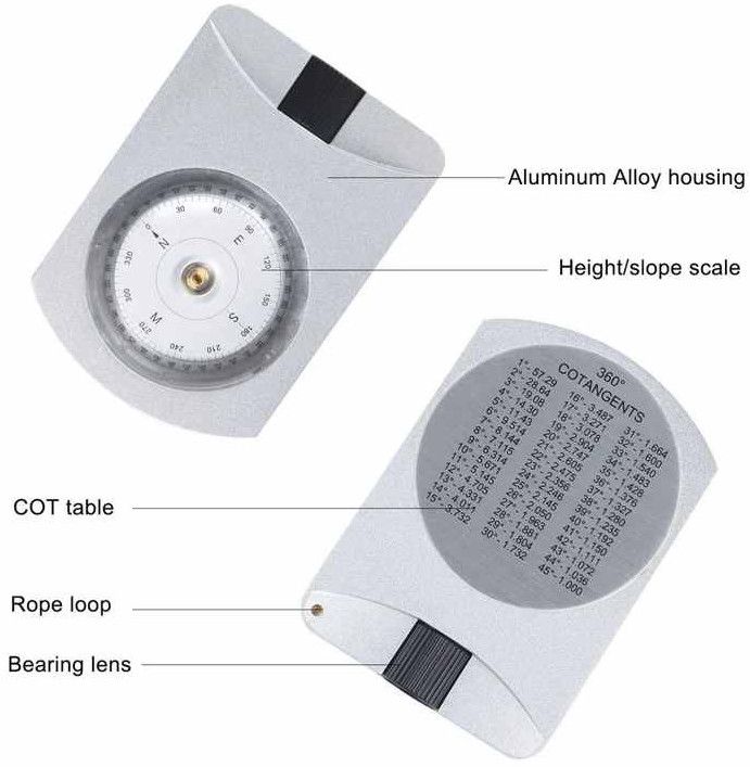 Aluminum inclinometer card with precise scales for highly accurate sighting
