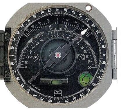 Rubber line for direct azimuth/bearing readings from the side- accurate to +/-2.5°