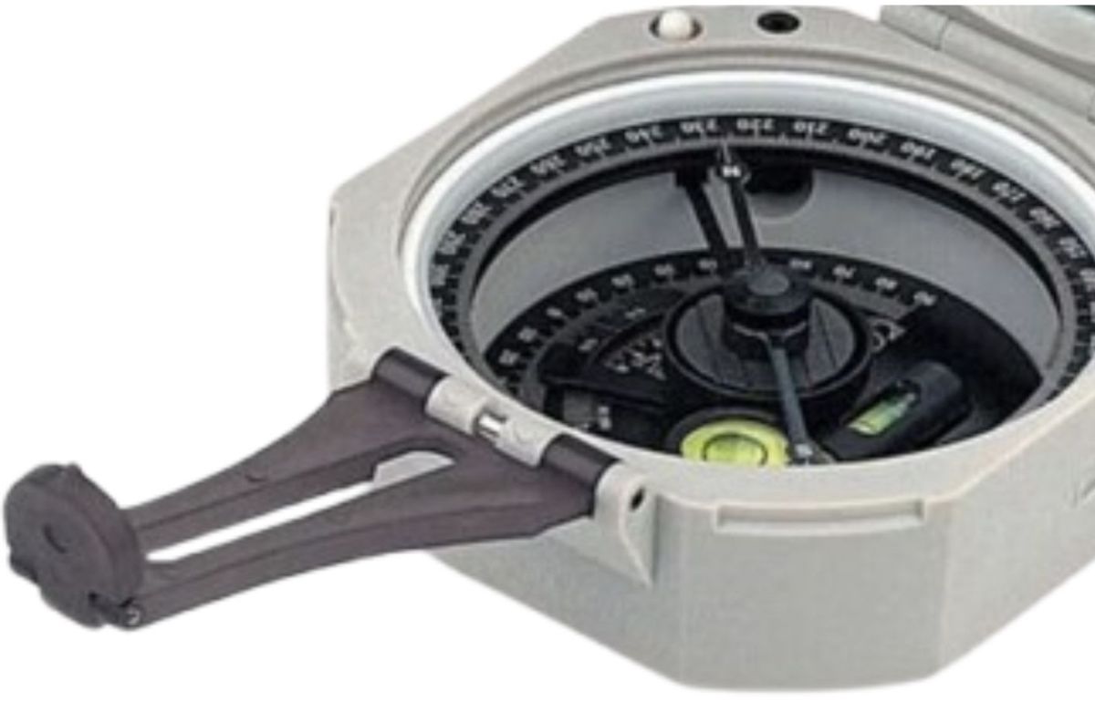 This precision compass is engineered for reliable orientation and angle measurements in field and surveying applications. Its lightweight composite body and cast rare-earth magnet on a sapphire bearing ensure smooth and accurate readings. The compass can measure vertical angles up to 90 and provides a percent grade scale in 5% increments. Magnetic declination is adjustable up to 180, making it suitable for global use. Silicone sealing provides waterproof performance, while the low center of gravity needle minimizes needle dip. The device is also compatible with Bruntons ball and socket tripod mounts for enhanced stability during measurements.